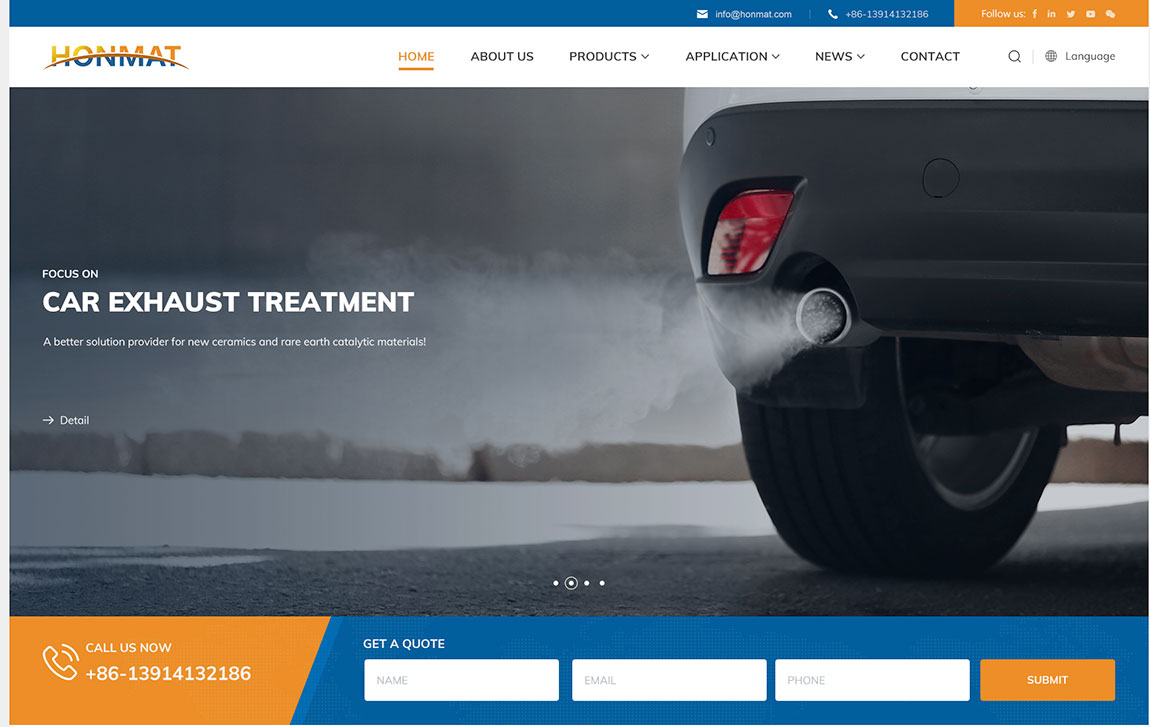 中言新材料(青岛)有限公司是一个环保节能材料的生产厂家,主要出口蜂窝陶瓷、隔热保温材料和稀土催化材料等,网站采用Google AMP技术开发,黄蓝渐变色为基调,外贸网站设计整体风格简洁大方,充分考虑了产品所处的细分行业领域。